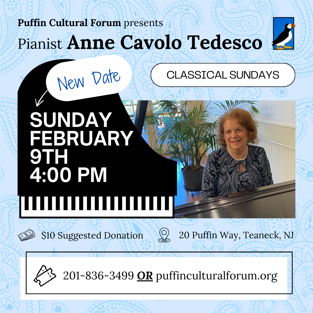 Our rescheduled Classical Sunday concert featuring Anne Tedesco will be taking place Sunday, February 9th at 4:00PM.